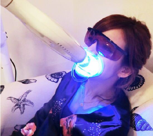 十、 戴上 護目鏡 ,打開美白儀藍光照射 7分鐘