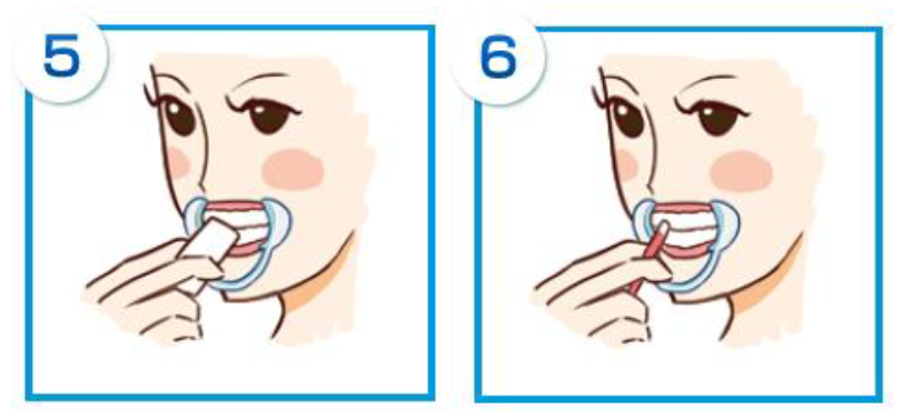 五、 用化妝棉 將牙齒表面水分擦干